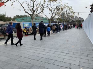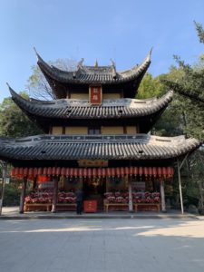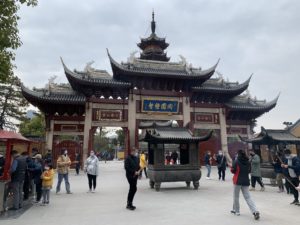 Auf dem Weg hinaus (es war inzwischen 12 Uhr) hatte sich das entspannte Tempelbild geändert. Gefühlt drängte sich nun halb-Shanghai im Komplex und bildete Schlangen vor den Gebetshäusern. Auch gibt es den ein oder anderen „Souvenirshop“, in dem Buddhas und andere Gebetsutensilien und Souvenirs gekauft werden können. Auf dem Weg nach draußen sah ich vor der Healthcode und Temperaturkontrolle eine 200m lange Schlange, die wartete hineingehen zu können. Als ich am Morgen dort war, wartete dort niemand.